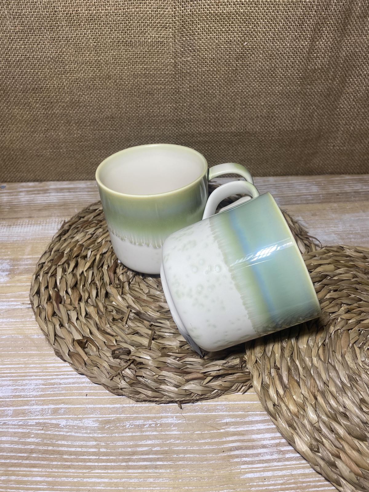 Precio, información, características e imágenes de Tetera, tazas, lechera y azucarero en tonos verdes y beis pertenece a la categoría Teteras, mugs y tazas (13).